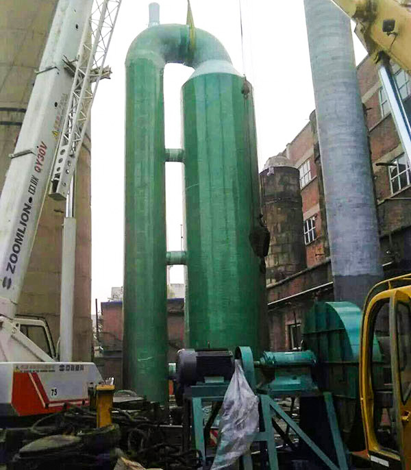 1、脱硫塔材质分为玻璃钢和碳钢两种,采用整体式或分节组装式,具有占地面积小 、运输、安装方便的特点。