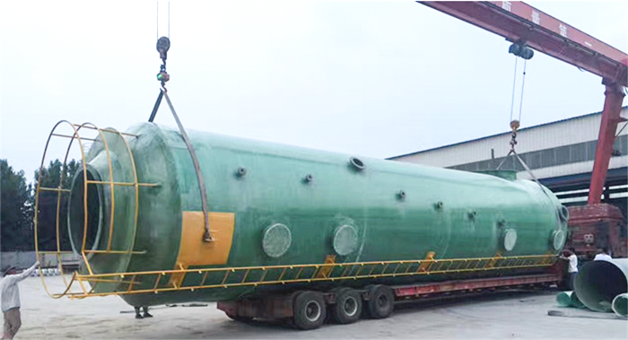 1、脱硫塔材质分为玻璃钢和碳钢两种,采用整体式或分节组装式,具有占地面积小 、运输、安装方便的特点。