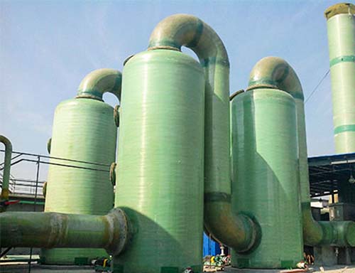 玻璃钢材质塔体就有耐酸碱抗腐蚀等特性,正常使用寿命三十年以上,玻璃钢吸收塔主塔内部结构紧凑多样;目前市场上比较普遍的主要是填料塔和喷雾式气体塔为主。目前,我公司新研制的一种耐酸碱、耐腐蚀的新型节能型吸收塔,不仅具有操作管理简单,占地面积小,净化效率高,而且使用寿命长等特点,被广泛应用于硝酸、硫酸等有害雾气等工艺设备的处理。我厂生产的玻璃钢吸收塔具有能耗低、结构简单、占地面积小,适用范围广,工艺简单,,净化吸收效率高特点,能有效去除氟化氢气体(HF)、氰氢酸气体(HCN)、氨气(NH3)、硫酸雾(H2SO4)、碱蒸气(NaOH)、铬酸雾(CrO3)、福尔马林(HCHO)氯化氢气体(HCl)、硫化氢气体(H2S)等水溶性气体。酸雾废气由引风机风管引进净化塔主塔体内部,经过主塔内的填料层,使废气与氢氧化钠吸收液进行气液两相充分接触吸收中和反应,酸雾废气经过净化后,再经除雾板脱水除雾后由风机排入大气。吸收液在塔底经水泵增压后在塔顶喷淋而下,回流至塔底循环使用。净化后的酸雾废气达到山东省地方排放标准的排放要求,低于国家排放标准。
